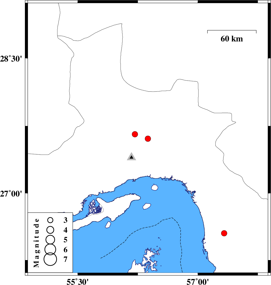 | 2022/01/20 | 15:23:08.3 | 18:53:08.3 | 27.608 | 56.376 | 12 | ML:3.3 | Hormozgan Province, 48 km North of Bandar-e abbas | ||