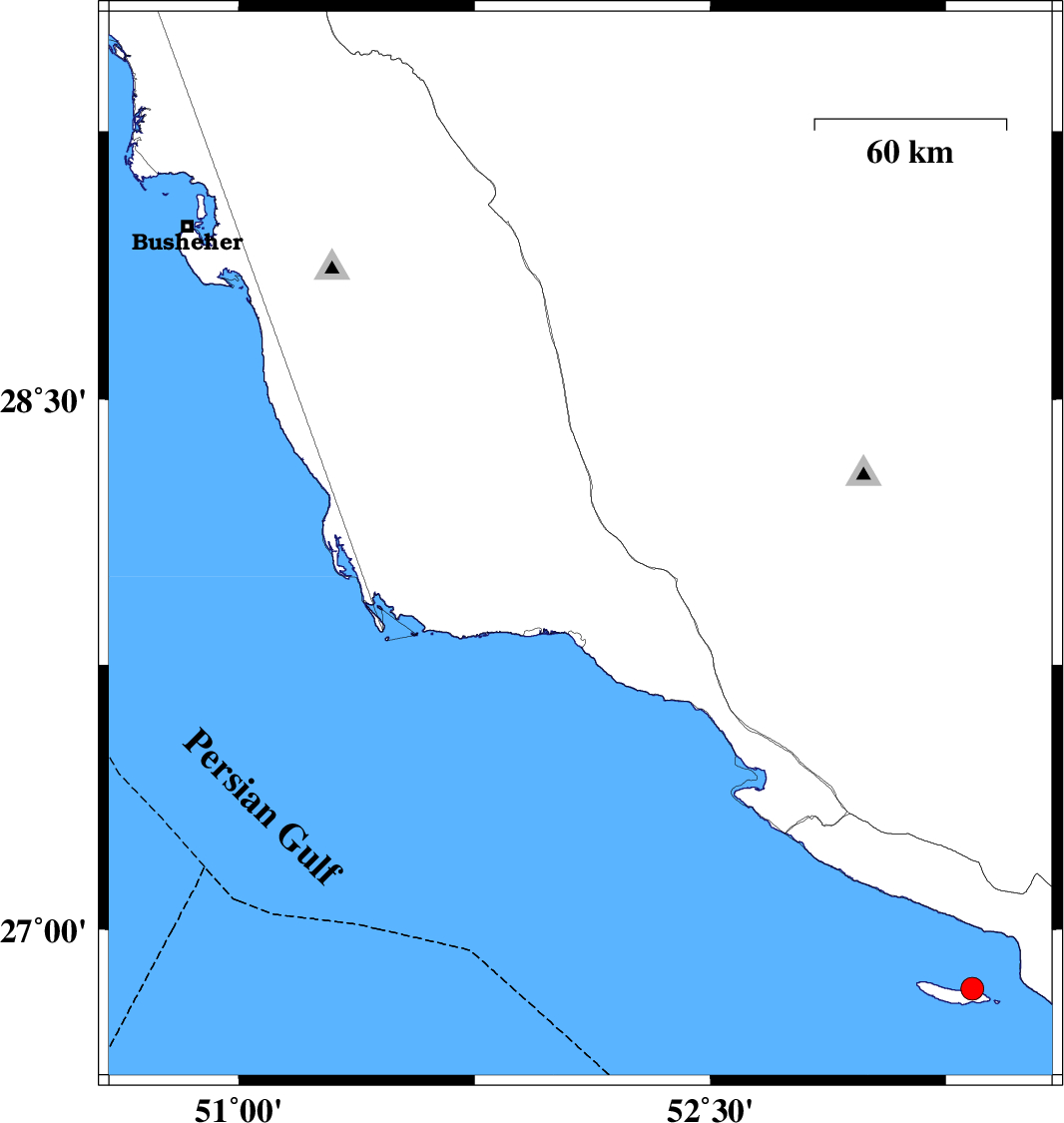 | 2022/01/21 | 12:49:42.9 | 16:19:42.9 | 28.085 | 52.087 | 10 | ML:4.1 | Bushehr Province, 29 km North of Bandar-e kangan | ||