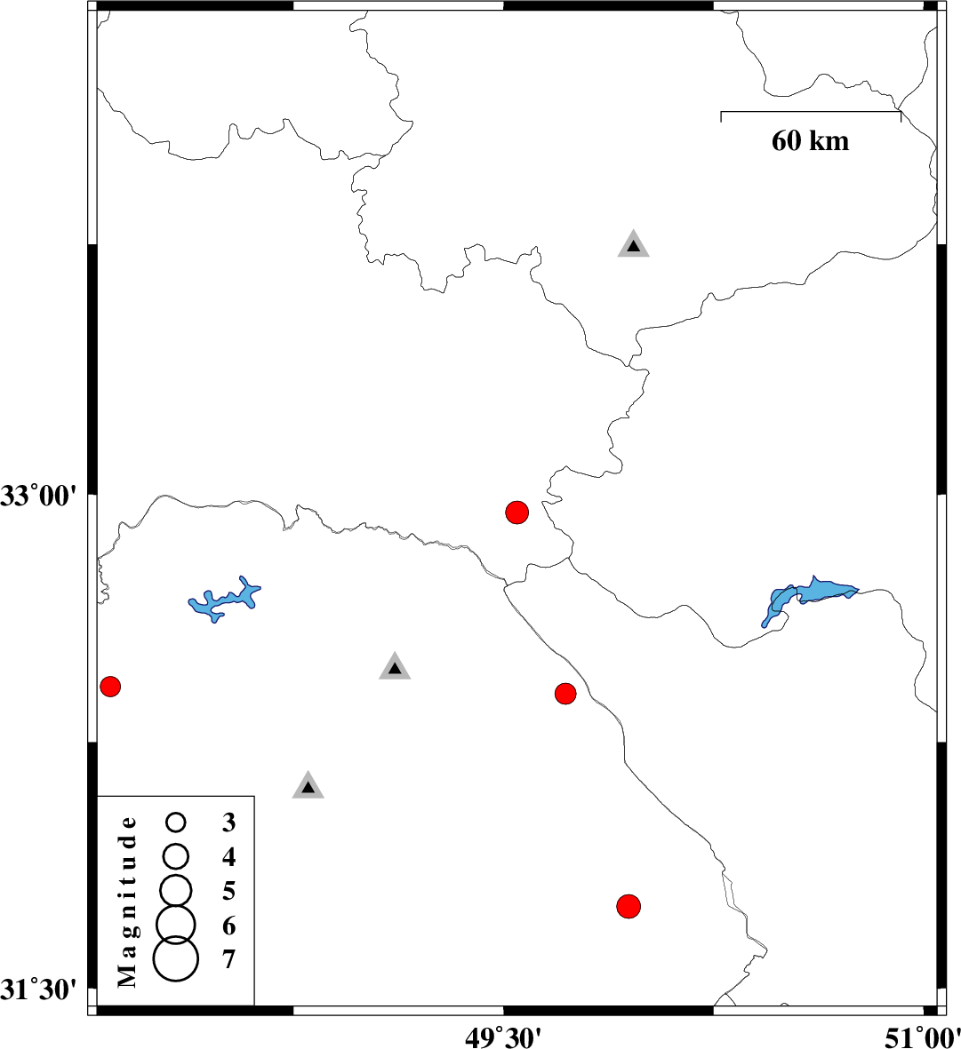 | 2022/01/05 | 00:48:43.5 | 04:18:43.5 | 32.419 | 48.096 | 12 | ML:3.3 | Khoozestan Province, 24 km -West of Andimeshk | ||