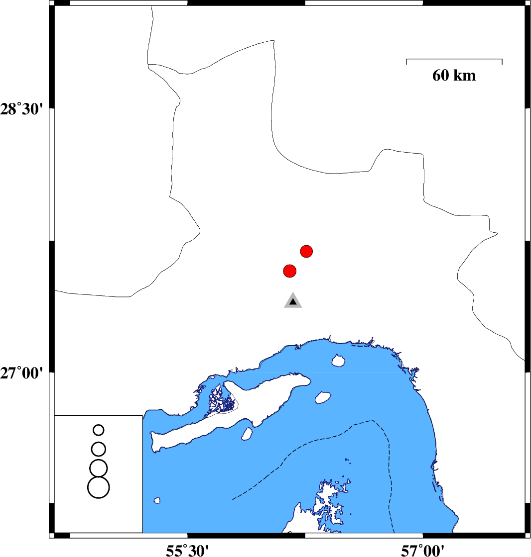 | 2022/02/03 | 05:24:01.1 | 08:54:01.1 | 27.578 | 56.151 | 10 | ML:3.6 | Hormozgan Province, 46 km North-West of Bandar-e abbas | ||