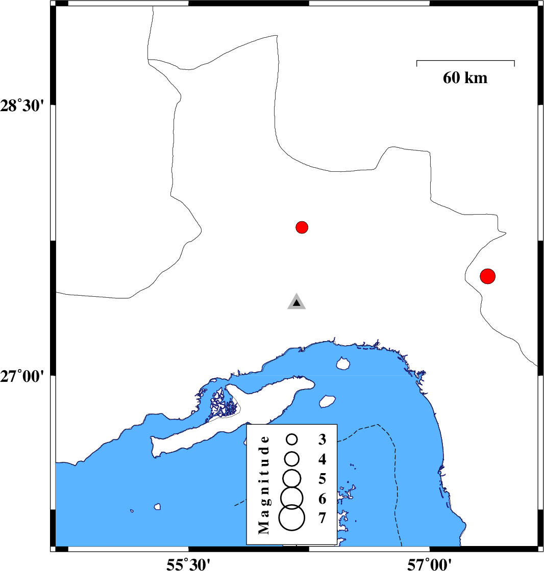 2022/03/08 | 23:21:39.0 | 02:51:39.0 | 27.543 | 56.173 | 14 | ML:4.3 | Hormozgan Province, 41 km North-West of Bandar-e abbas | ||