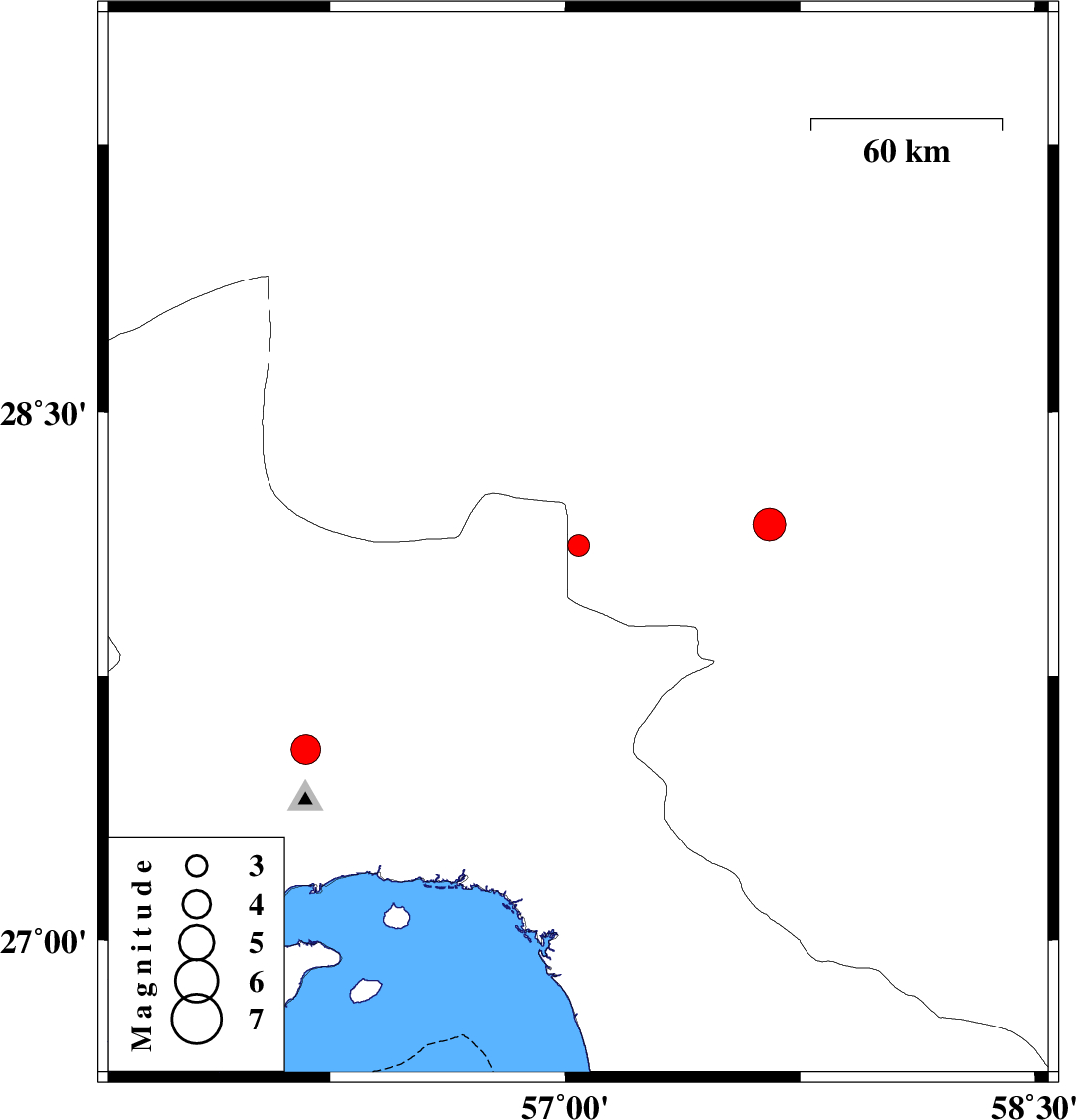 | 2022/03/09 | 16:48:02.6 | 20:18:02.6 | 28.122 | 57.042 | 12 | ML:3.1 | Kerman Province, 67 km North-West of Kahnuj | ||