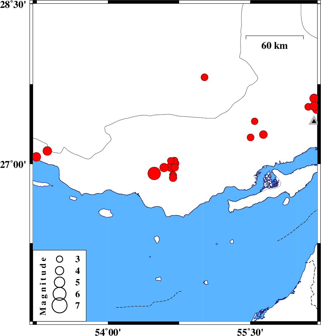 2022/03/17 03:15:05.7 06:45:05.7 26.86954.68612 ML:3.6 Hormozgan Province, 41 km North-West of Bandar-e lengeh