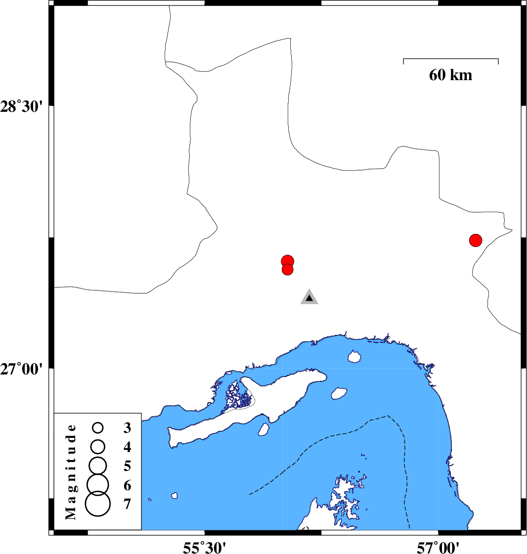 2022/04/27 19:30:12.2 00:00:12.2 27.73257.2414 ML:3.7 Hormozgan Province, 34 km North of Dehbarez