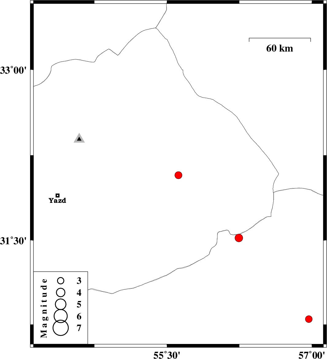| 2022/05/04 | 08:21:15.2 | 12:51:15.2 | 32.074 | 55.619 | 8 | ML:3.4 | Yazd Province, 56 km North-East of Bafq | ||