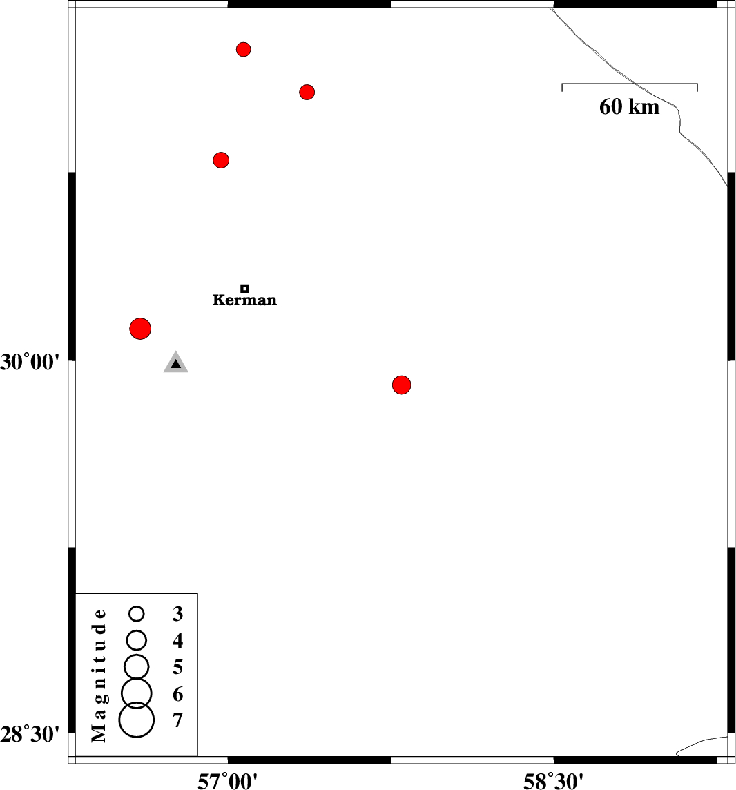 | 2022/05/20 | 15:48:06.5 | 20:18:06.5 | 29.903 | 57.799 | 12 | ML:3.8 | Kerman Province, 81 km South-East of Kerman | ||