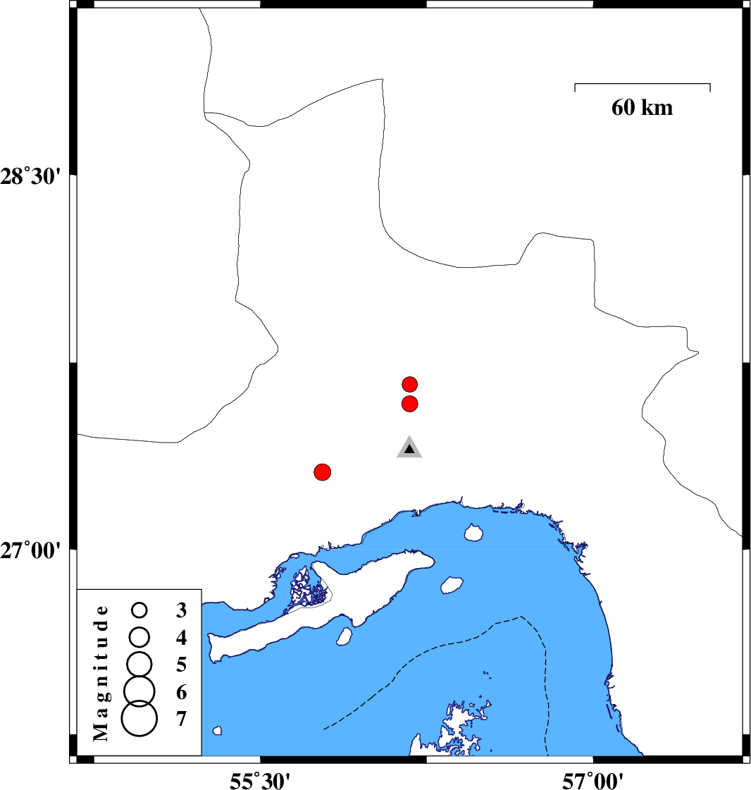 | 2022/05/27 | 09:10:11.7 | 13:40:11.7 | 27.31 | 55.779 | 24 | ML:3.4 | Hormozgan Province, 52 km North-West of Bandar-e abbas | ||