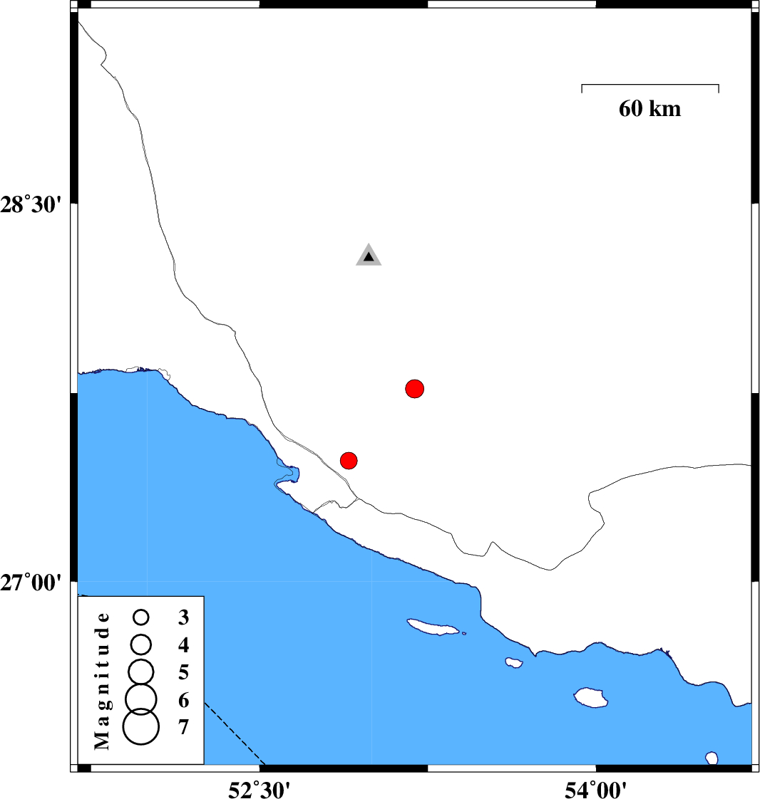 | 2022/05/17 | 03:23:47.9 | 07:53:47.9 | 27.481 | 52.898 | 8 | ML:3.4 | Fars Province, 7 km of Mehr |
