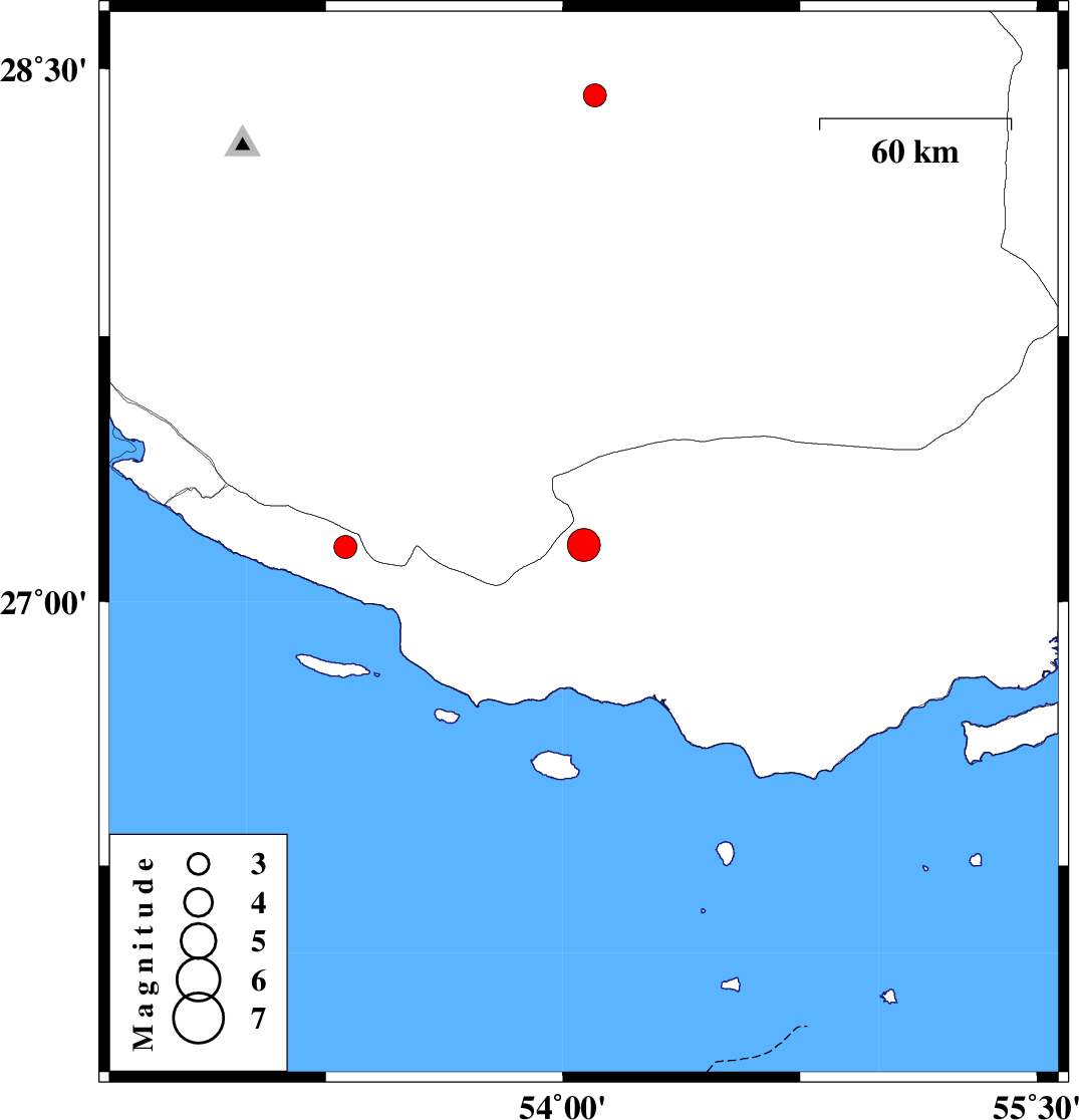 | 2022/05/29 | 10:23:16.0 | 14:53:16.0 | 27.155 | 53.312 | 12 | ML:3.3 | Hormozgan Province, 24 km South-East of Lamerd |