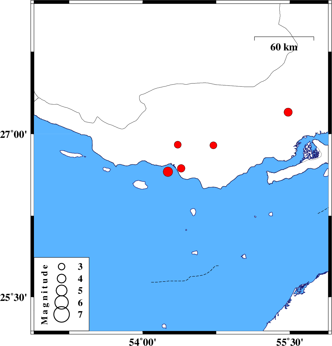 Persian Gulf, 61 km South-West of Bastak | |
