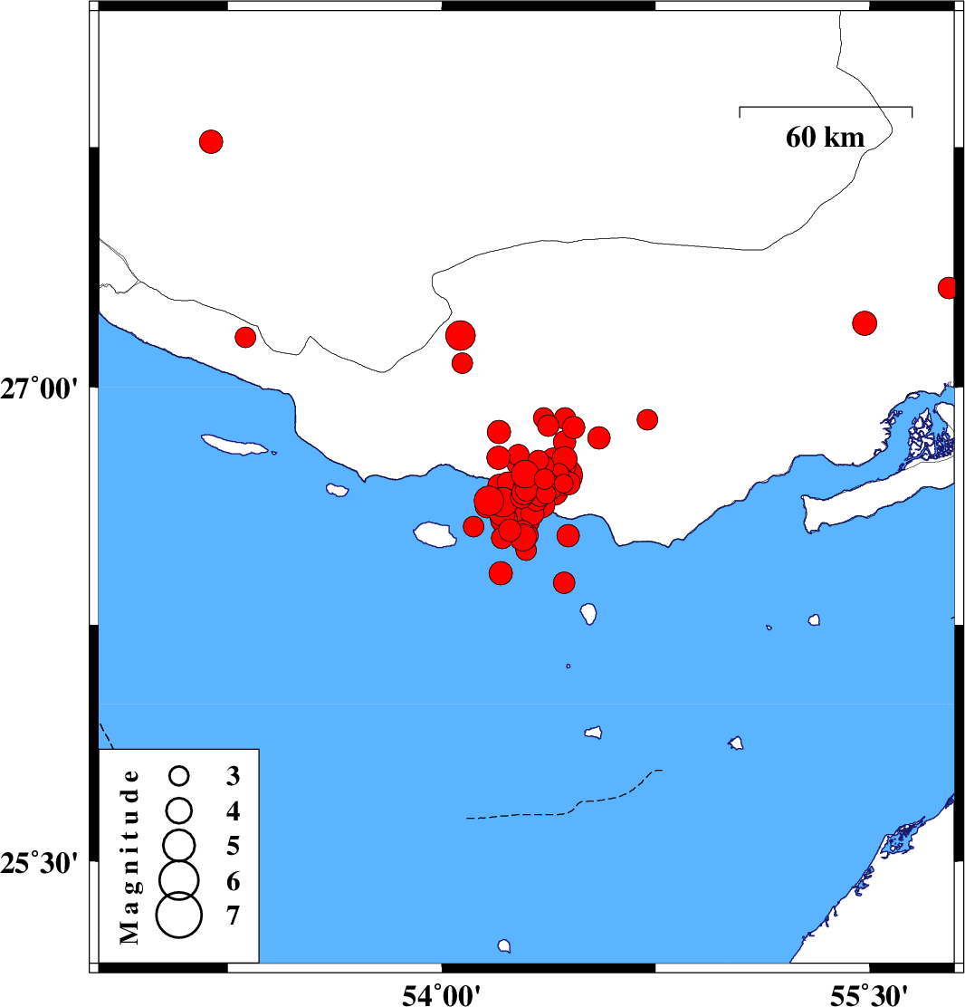 2022/06/16 11:18:16.2 15:48:16.2 26.65354.27912 ML:3.5 Persian Gulf, 61 km South of Bastak