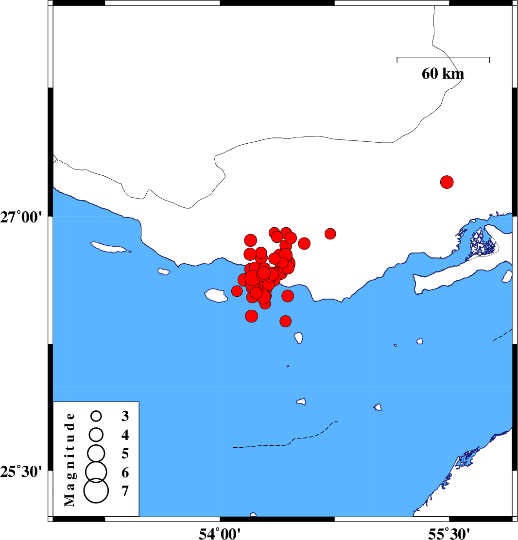 2022/06/16 11:18:16.2 15:48:16.2 26.65354.27912 ML:3.5 Persian Gulf, 61 km South of Bastak