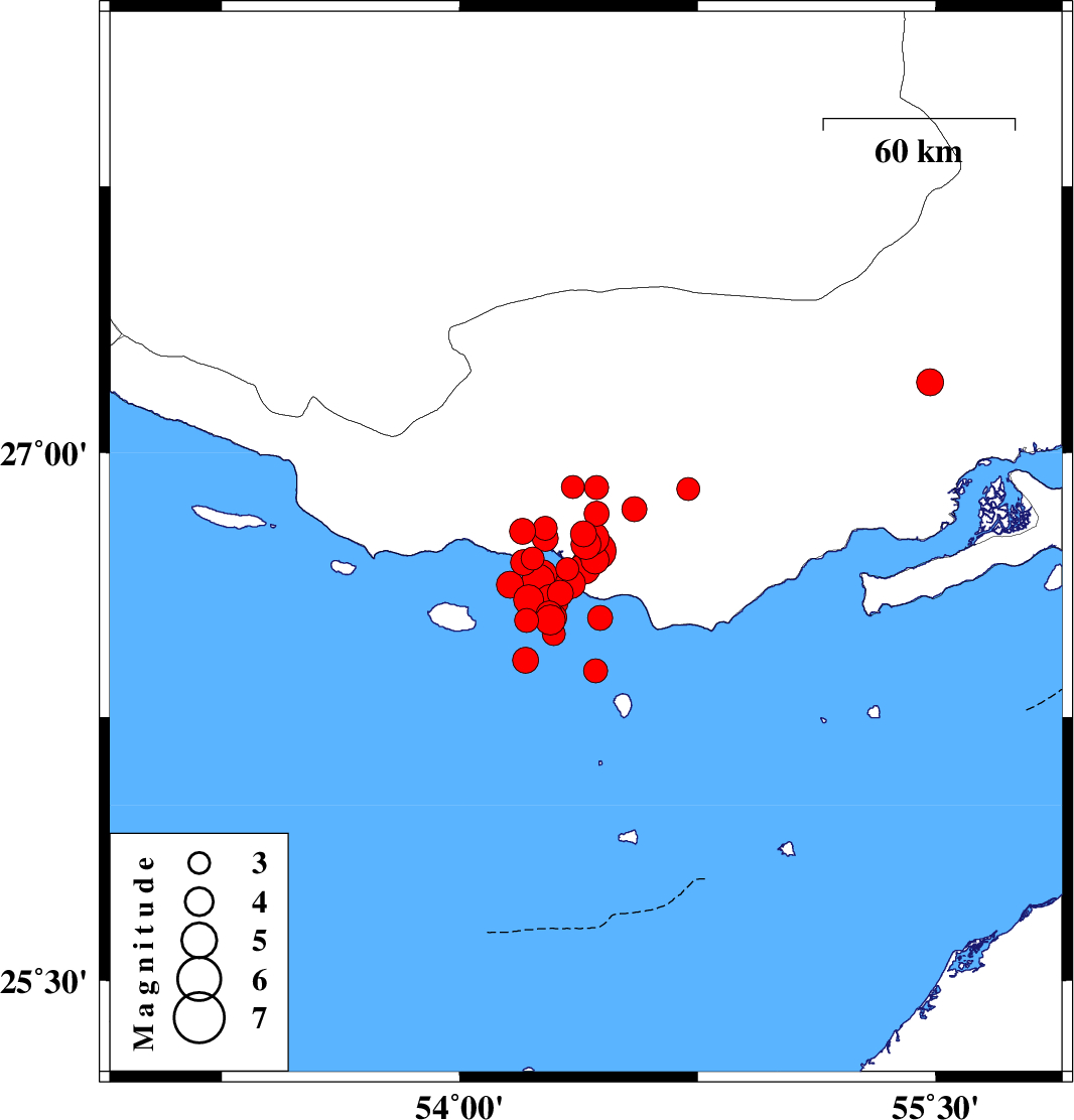 2022/06/15 19:53:54.8 00:23:54.8 26.68954.20212 ML:3.6 Persian Gulf, 59 km South-West of Bastak