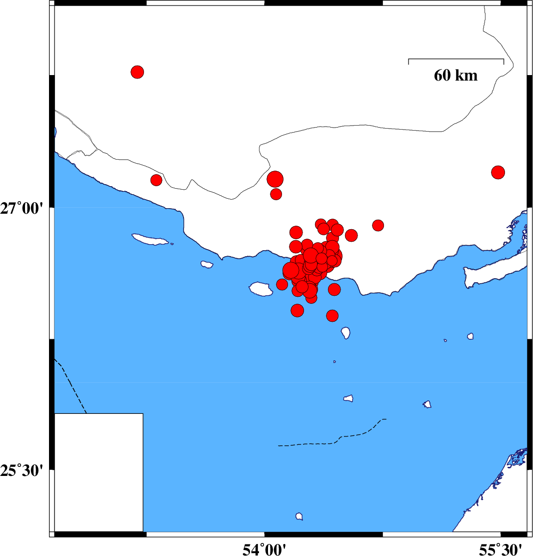 Persian Gulf, 63 km South-West of Bastak | |