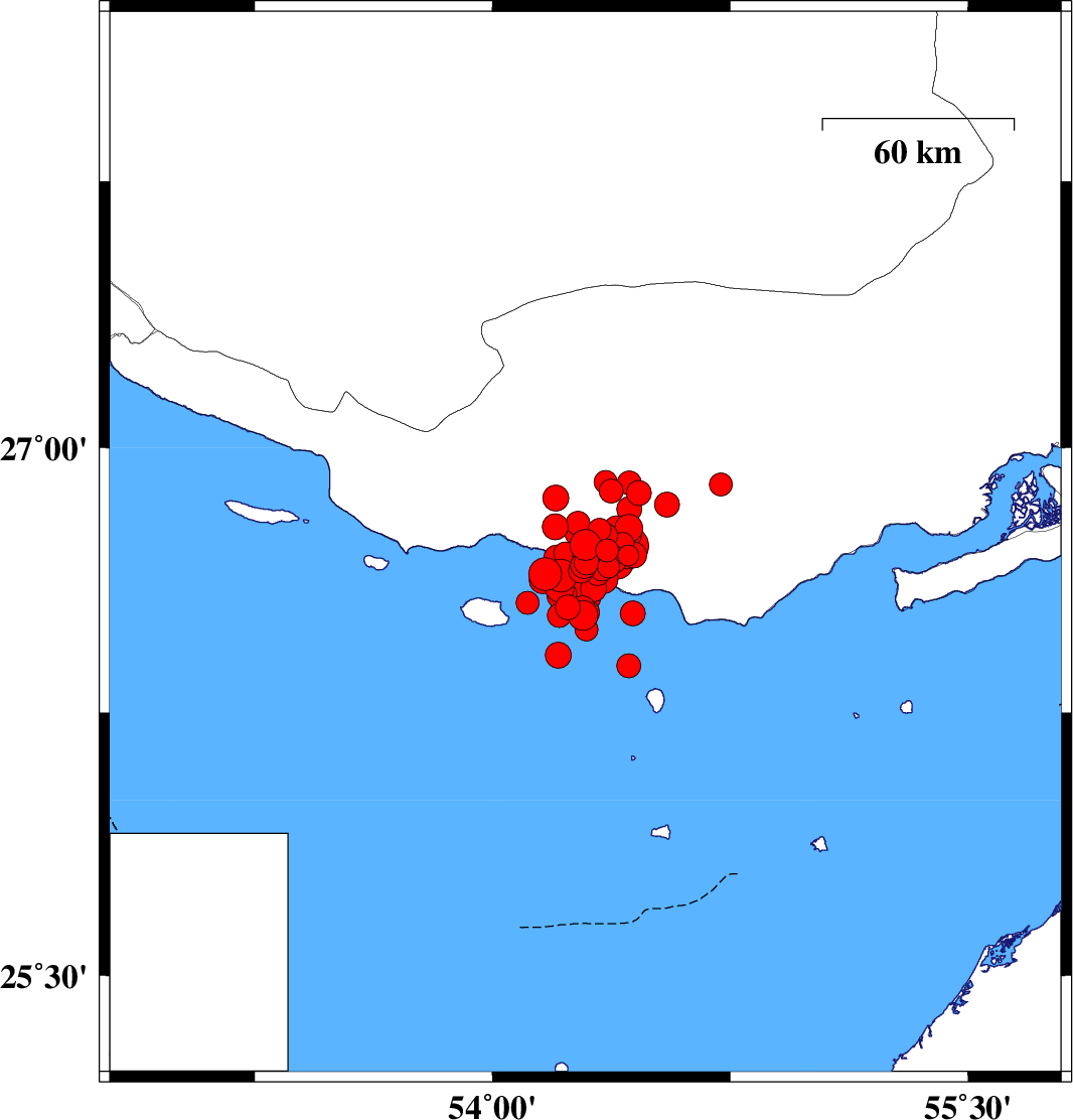 2022/06/16 11:18:16.2 15:48:16.2 26.65354.27912 ML:3.5 Persian Gulf, 61 km South of Bastak