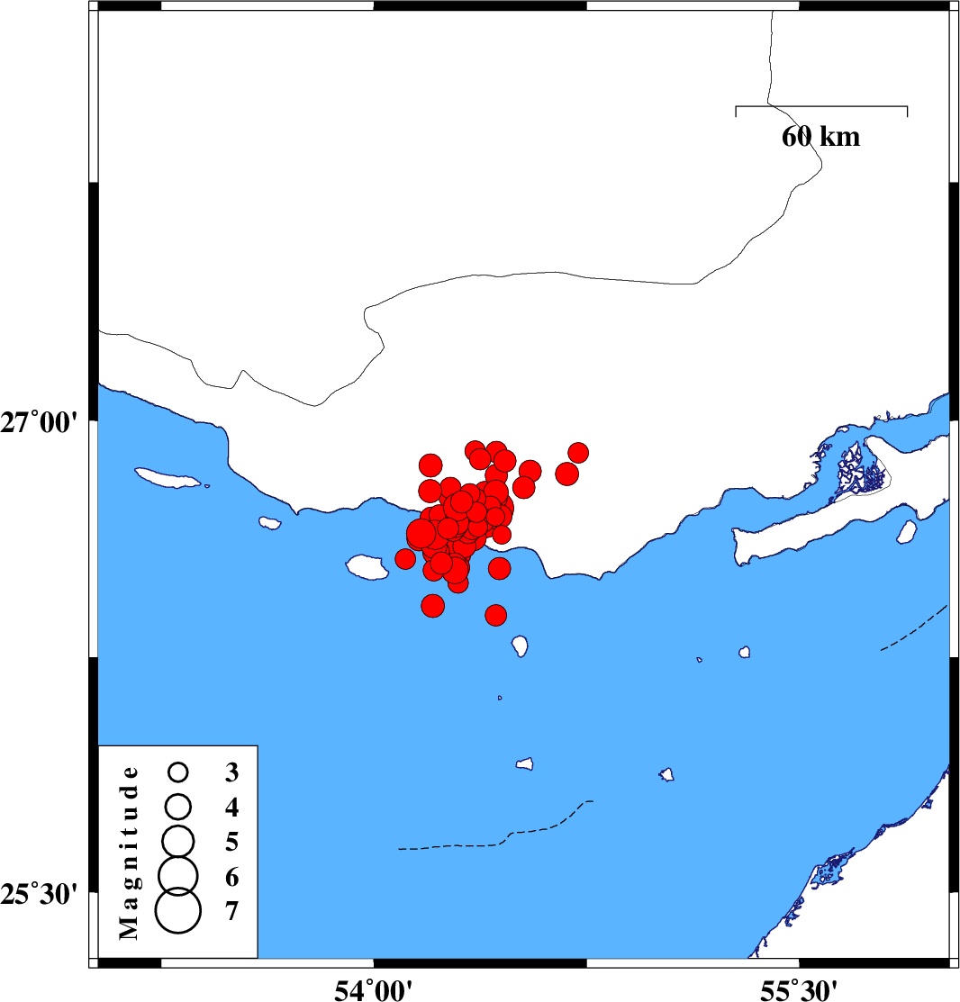 Persian Gulf, 63 km South-West of Bastak | |