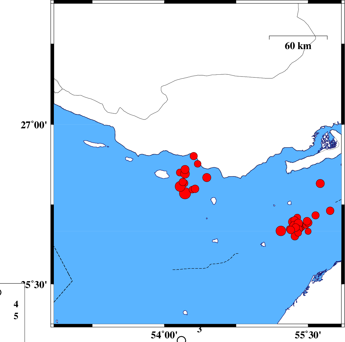 Persian Gulf, 54 km -West of Bandar-e lengeh | |