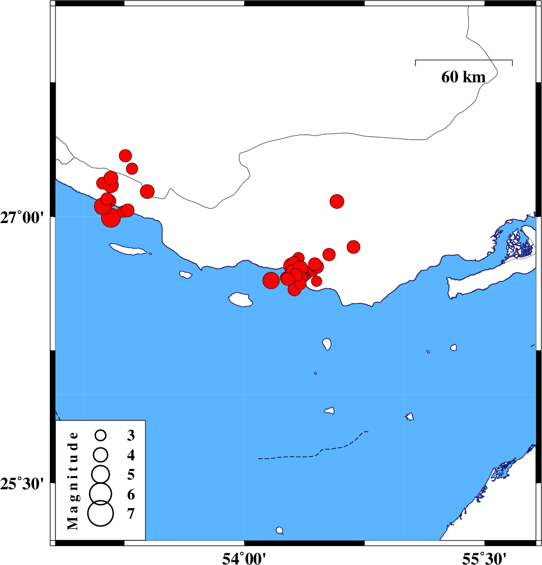 2022/06/24 23:47:23.3 04:17:23.3 26.65154.2712 ML:3.7 Persian Gulf, 62 km South of Bastak