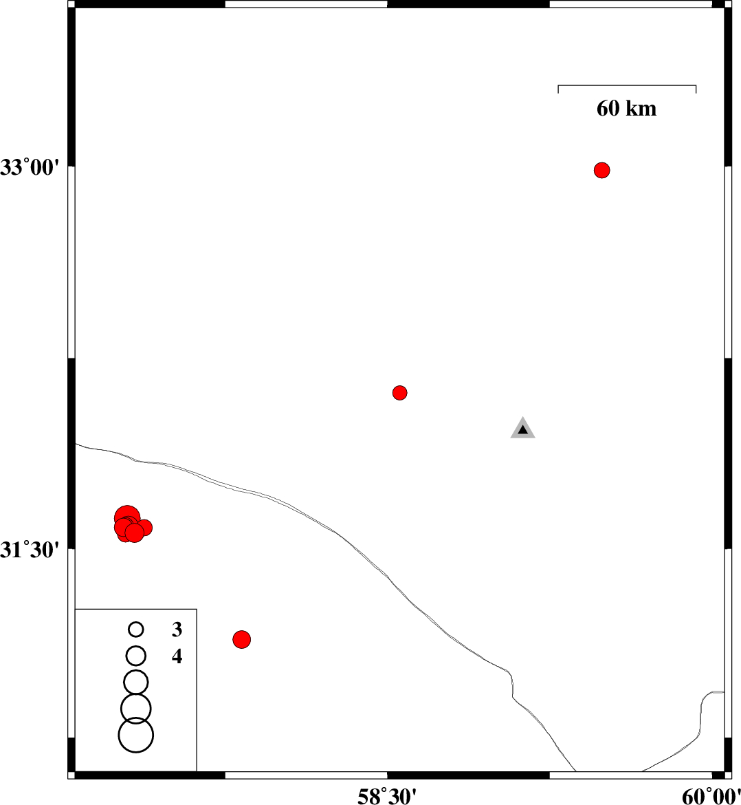 | Prel. Rep. | Date | Time(UTC) | Time(Local) | Lat. | Lon. | Depth | Mag. | Region | Waveform |