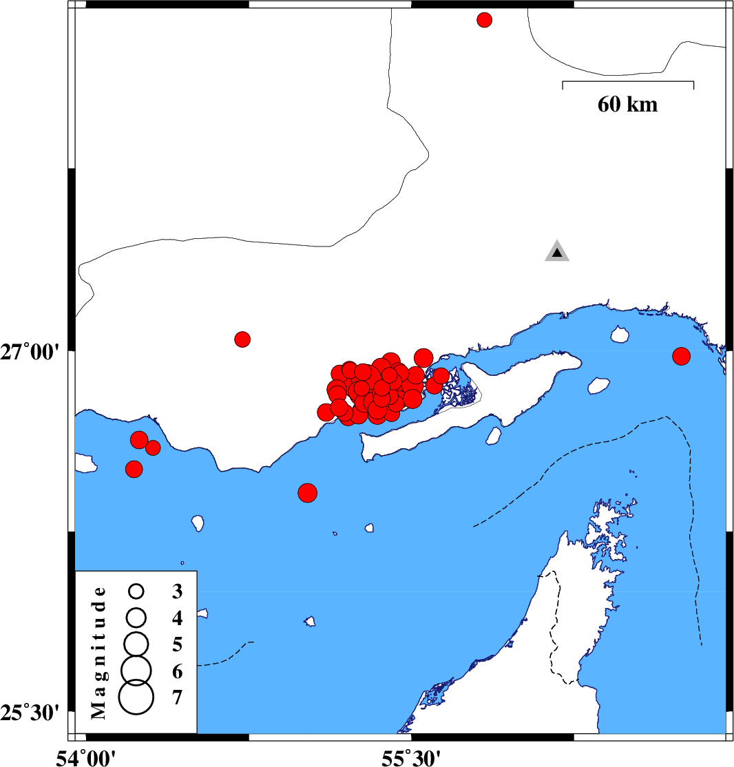 2022/07/03 12:18:59.5 16:48:59.5 26.63154.2459 ML:3.7 Persian Gulf, 64 km South-West of Bastak
