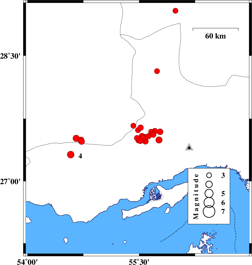 2022/07/11 17:16:50.2 21:46:50.2 26.62454.31912 ML:4.3 Persian Gulf, 64 km South of Bastak