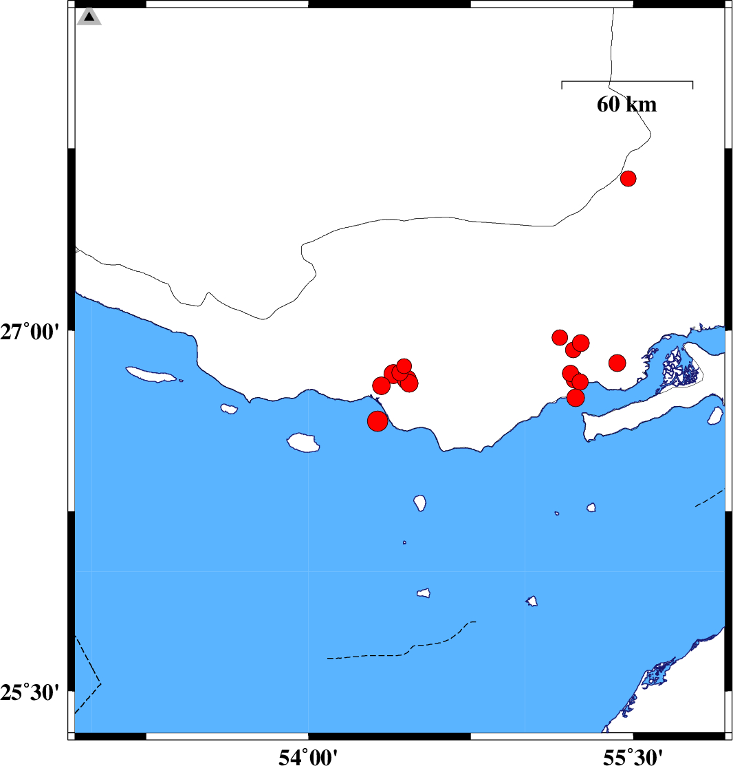 Persian Gulf, 44 km North-East of Bandar-e lengeh | |