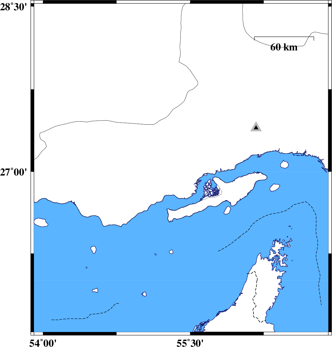 2022/06/24 04:58:40.2 09:28:40.2 26.62454.34812 ML:3.3 Persian Gulf, 64 km South of Bastak