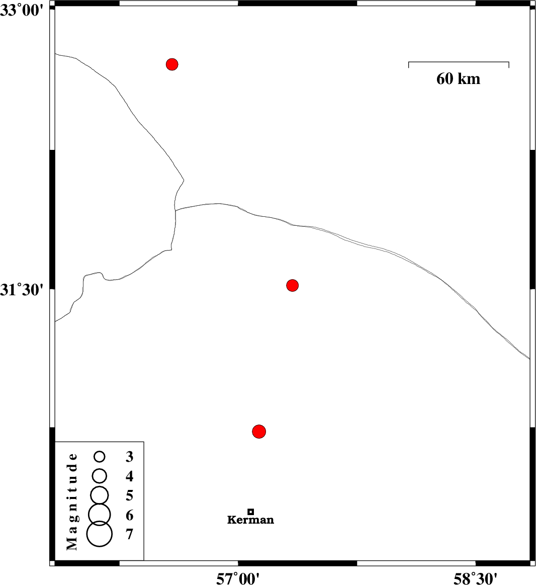 | 2022/08/06 | 15:52:46.5 | 20:22:46.5 | 30.726 | 57.131 | 12 | ML:3.8 | Kerman Province, 49 km North of Kerman |