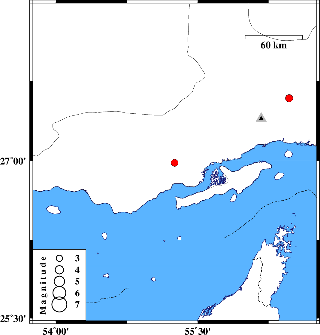 | 2022/08/12 | 10:23:41.9 | 14:53:41.9 | 26.98 | 55.256 | 12 | ML:3.4 | Hormozgan Province, 65 km North-East of Bandar-e lengeh | ||