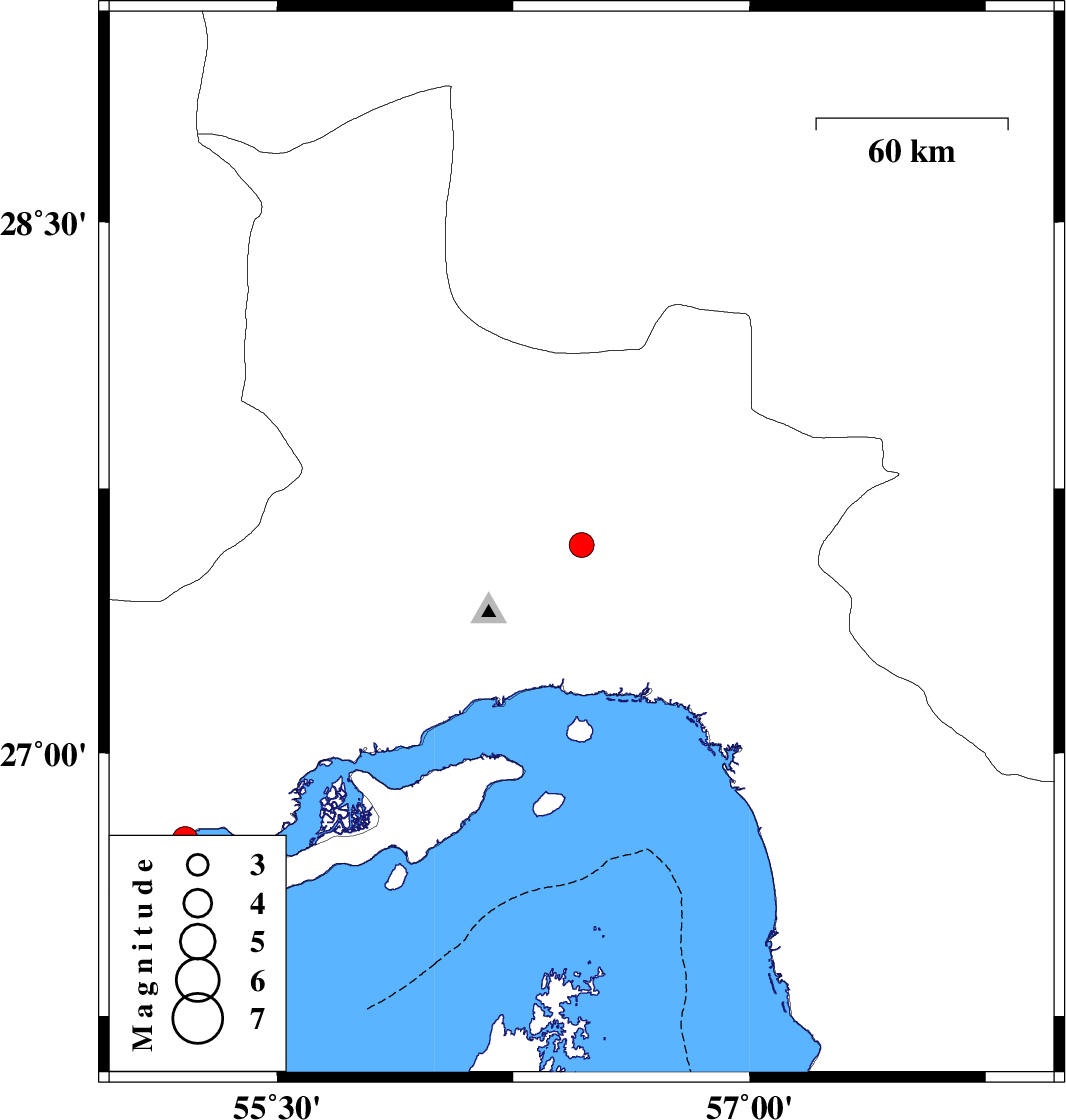 | 2022/08/04 | 04:09:27.0 | 08:39:27.0 | 26.754 | 55.208 | 12 | ML:3.6 | Hormozgan Province, 44 km North-East of Bandar-e lengeh |