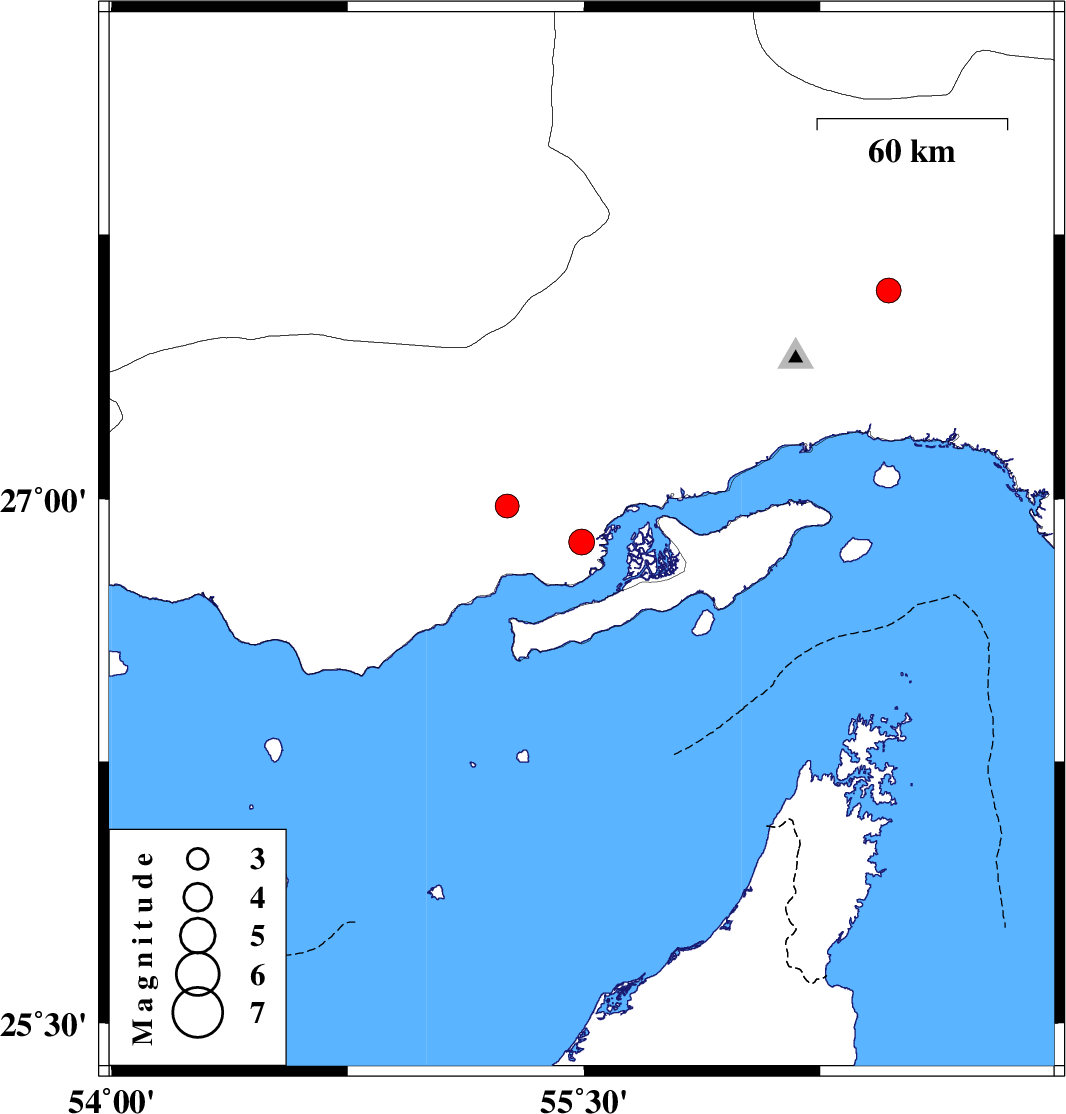 | 2022/08/12 | 10:23:41.9 | 14:53:41.9 | 26.98 | 55.256 | 12 | ML:3.4 | Hormozgan Province, 65 km North-East of Bandar-e lengeh | ||