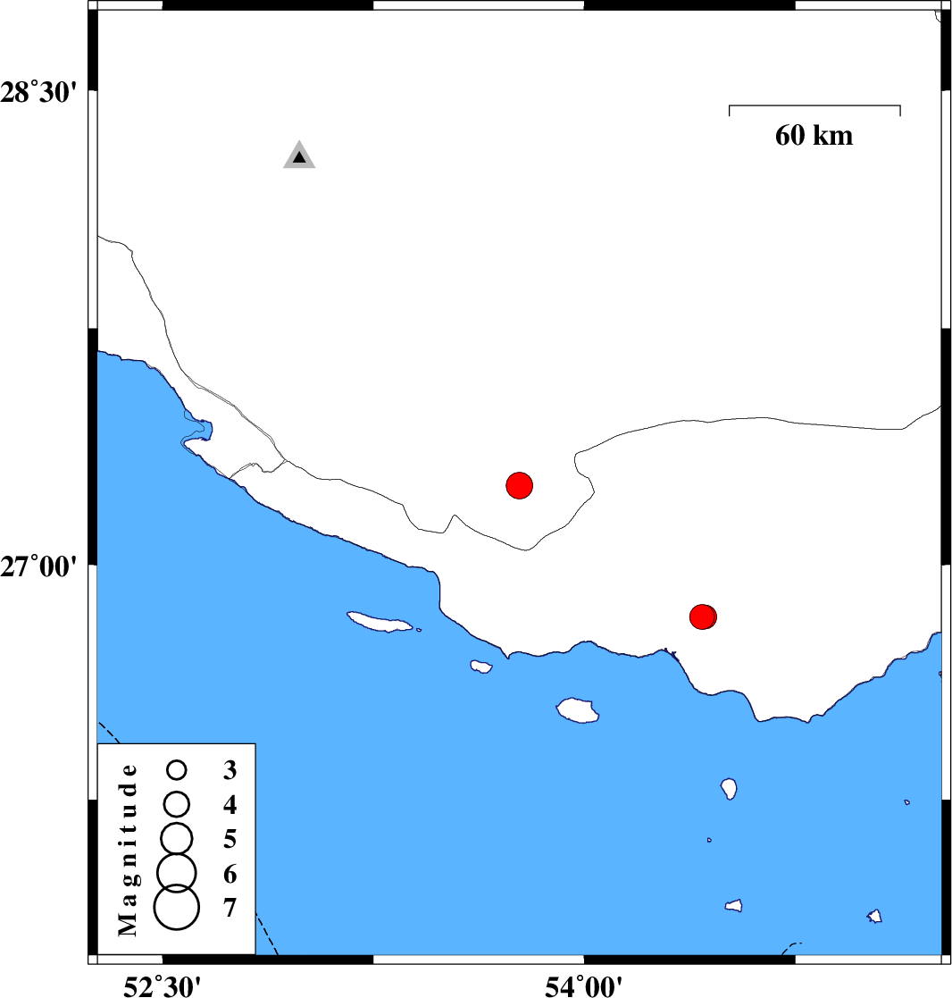 | 2022/08/20 | 14:27:16.3 | 18:57:16.3 | 27.252 | 53.769 | 12 | ML:4.2 | Fars Province, 59 km -West of Bastak | ||