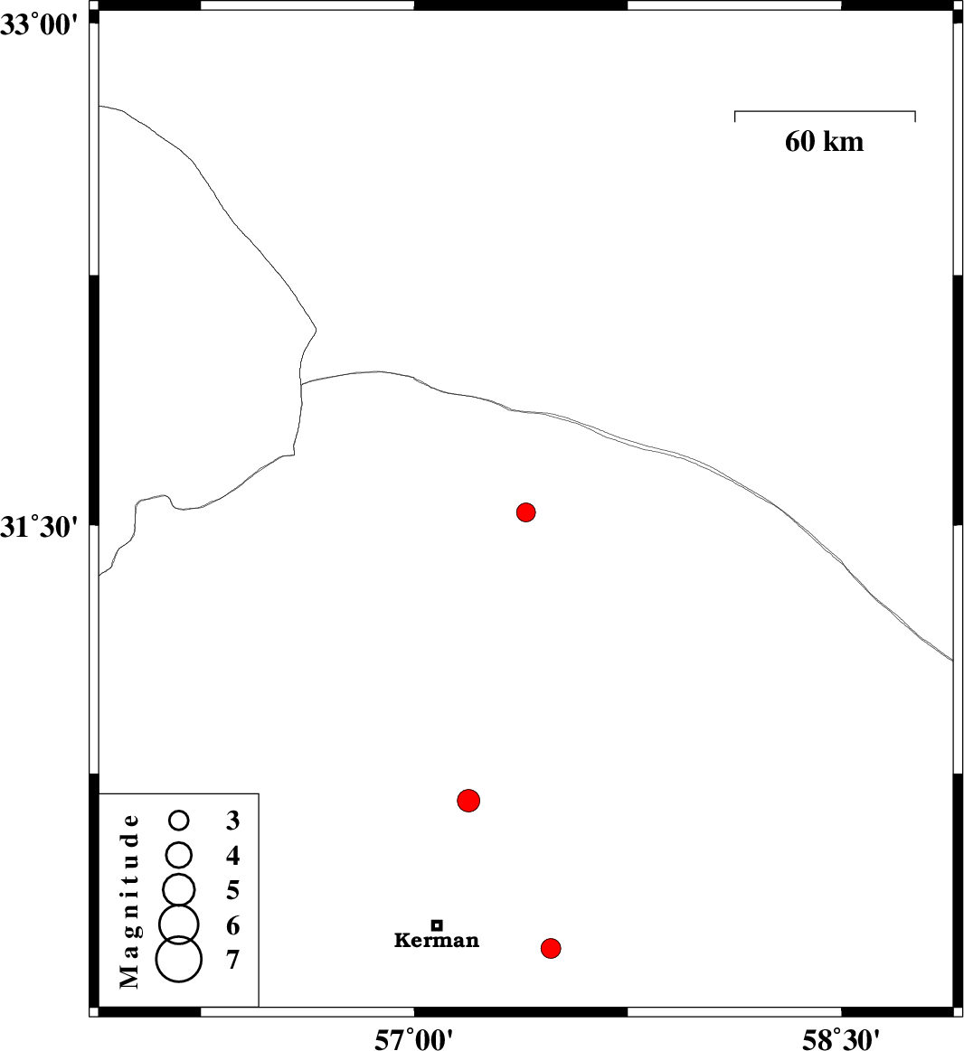 | 2022/08/27 | 06:41:43.1 | 11:11:43.1 | 31.538 | 57.392 | 12 | ML:3 | Kerman Province, 63 km North-East of Ravar | ||
