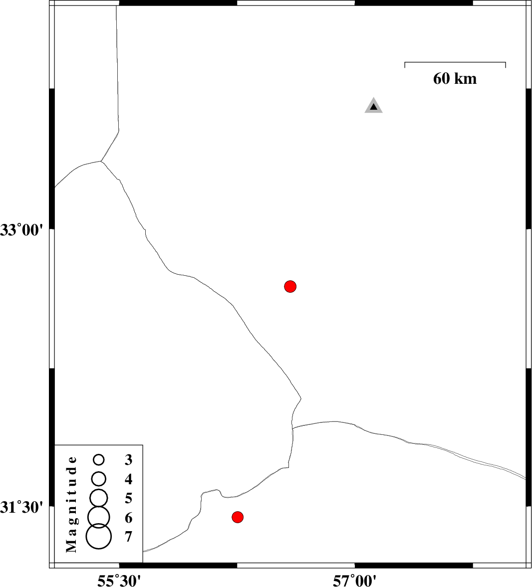 2022/09/04 | 00:59:46.2 | 05:29:46.2 | 31.441 | 56.254 | 12 | ML:3.2 | Kerman Province, 56 km North-West of Ravar |