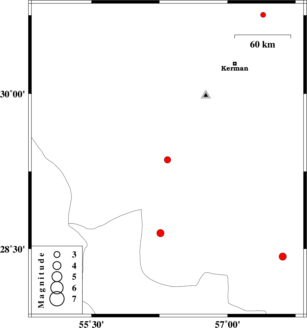 | 2022/10/23 | 13:00:29.9 | 16:30:29.9 | 28.424 | 57.608 | 12 | ML:3.7 | Kerman Province, 30 km South-West of Jiroft | ||