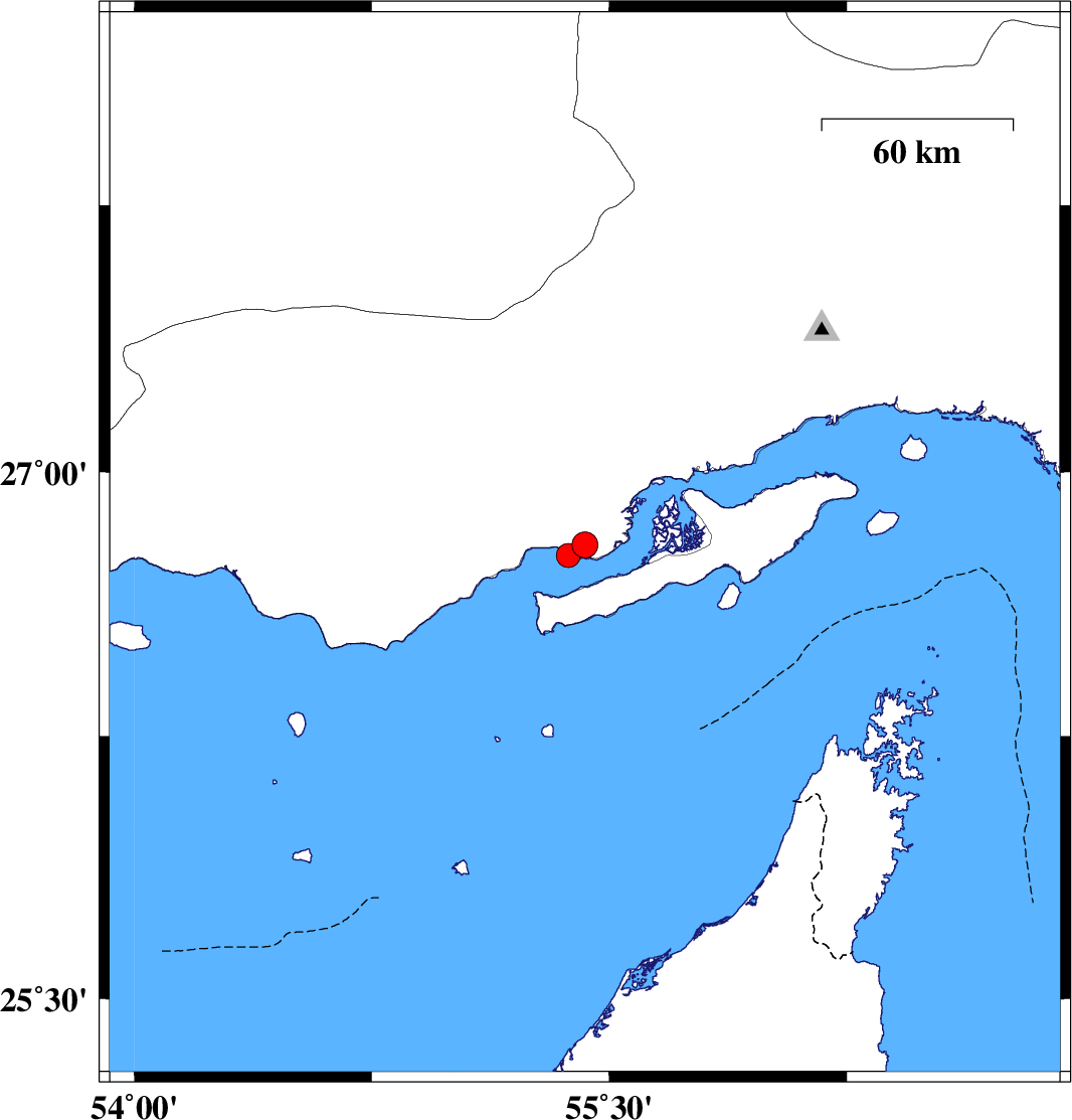 | 2022/10/17 | 21:00:54.5 | 00:30:54.5 | 26.763 | 55.371 | 12 | ML:3.4 | Persian Gulf, 58 km North-East of Bandar-e lengeh |