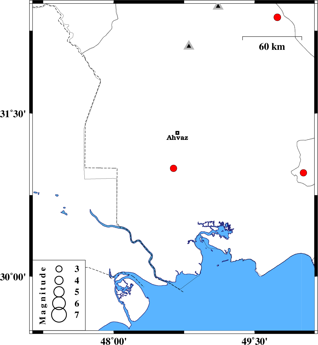 | 2022/11/04 | 14:04:15.4 | 17:34:15.4 | 30.997 | 48.637 | 12 | ML:3.3 | Khoozestan Province, 38 km North of Shadegan | ||