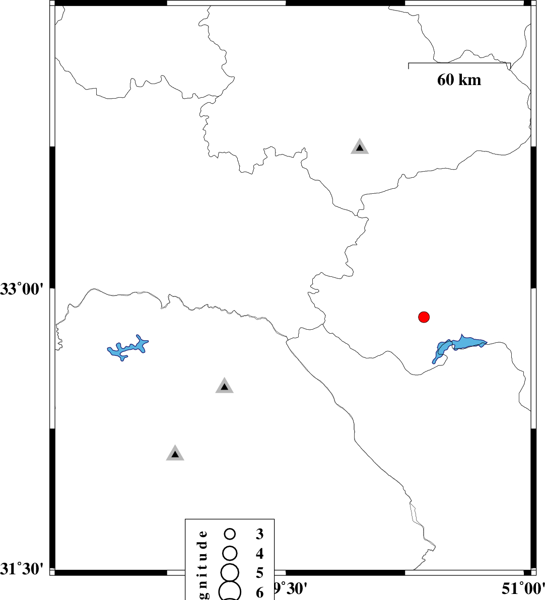 | 2022/10/28 | 09:30:50.2 | 13:00:50.2 | 32.714 | 49.114 | 10 | ML:3.1 | Khoozestan Province, 36 km North of Lali | ||