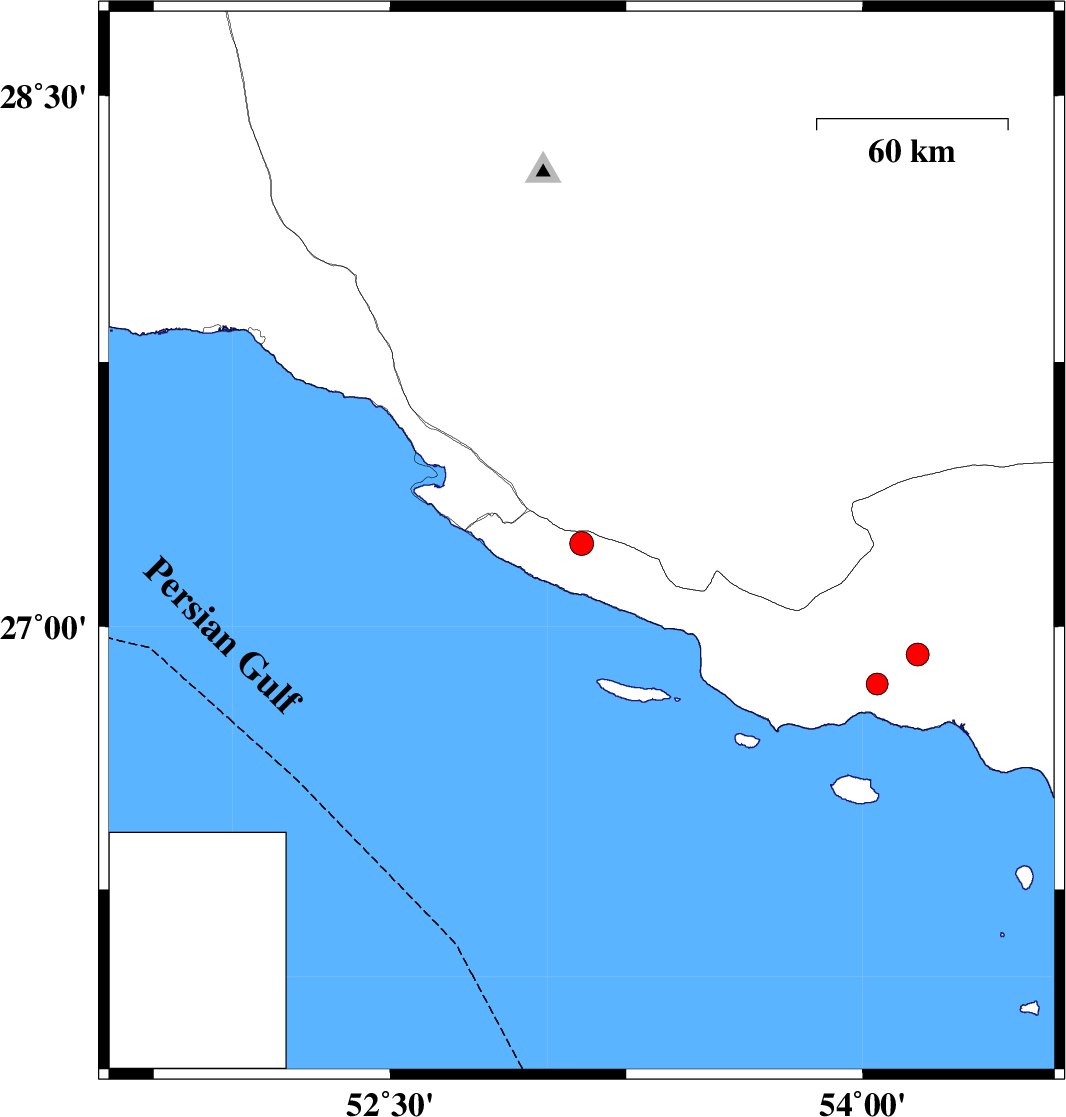 | 2022/10/26 | 13:26:59.6 | 16:56:59.6 | 26.836 | 54.046 | 12 | ML:3.1 | Hormozgan Province, 51 km South-West of Bastak |