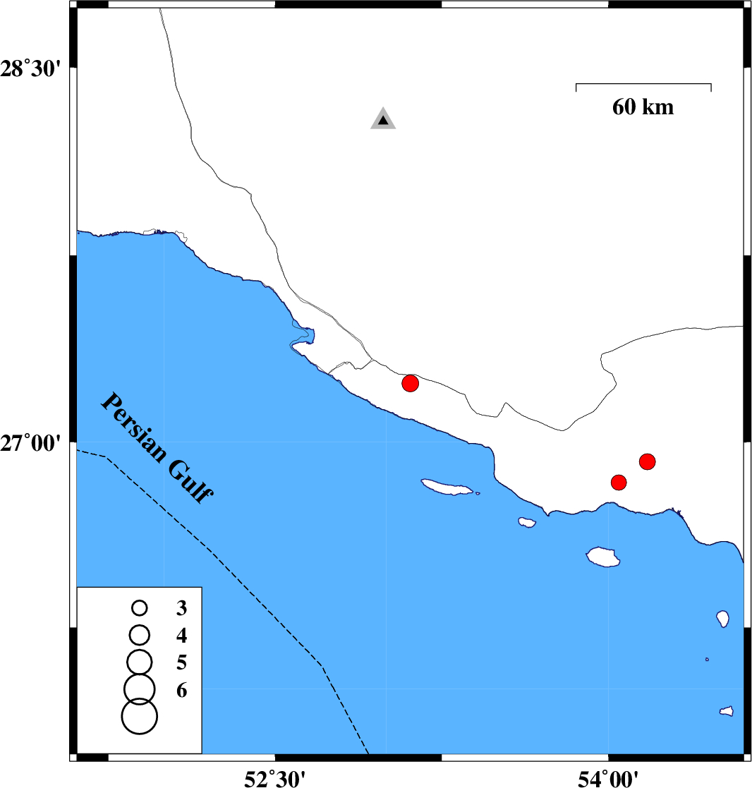 2022/11/09 | 00:17:20.8 | 03:47:20.8 | 27.236 | 53.108 | 12 | ML:3.4 | Hormozgan Province, 12 km of Lamerd | ||