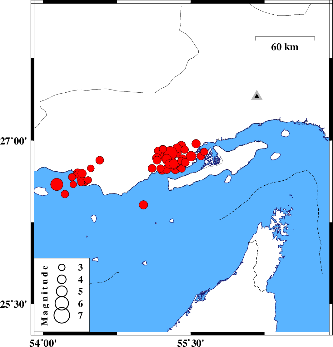 2022/07/02 00:37:39.7 05:07:39.7 26.76655.34616 ML:3.6 Persian Gulf, 56 km North-East of Bandar-e lengeh