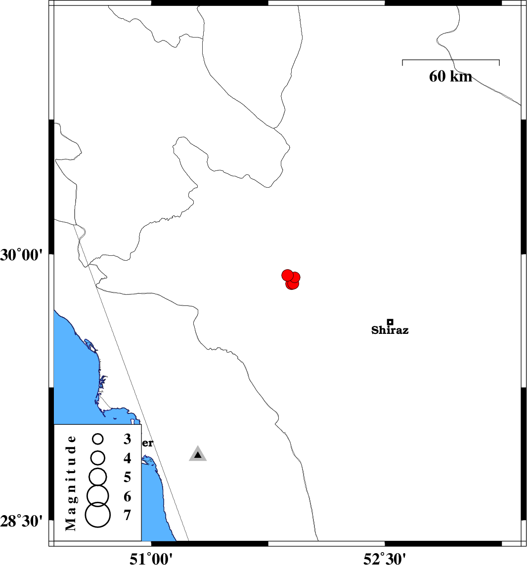 | 2022/11/25 | 05:47:17.4 | 09:17:17.4 | 29.869 | 51.921 | 12 | ML:3.1 | Fars Province, 44 km South of Ardakan | ||