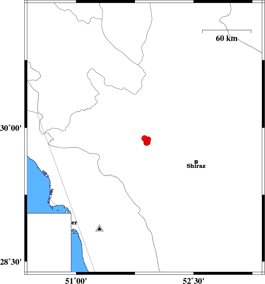 | 2022/11/25 | 05:19:32.5 | 08:49:32.5 | 29.835 | 51.911 | 12 | ML:3.2 | Fars Province, 34 km North-East of Kazerun | ||