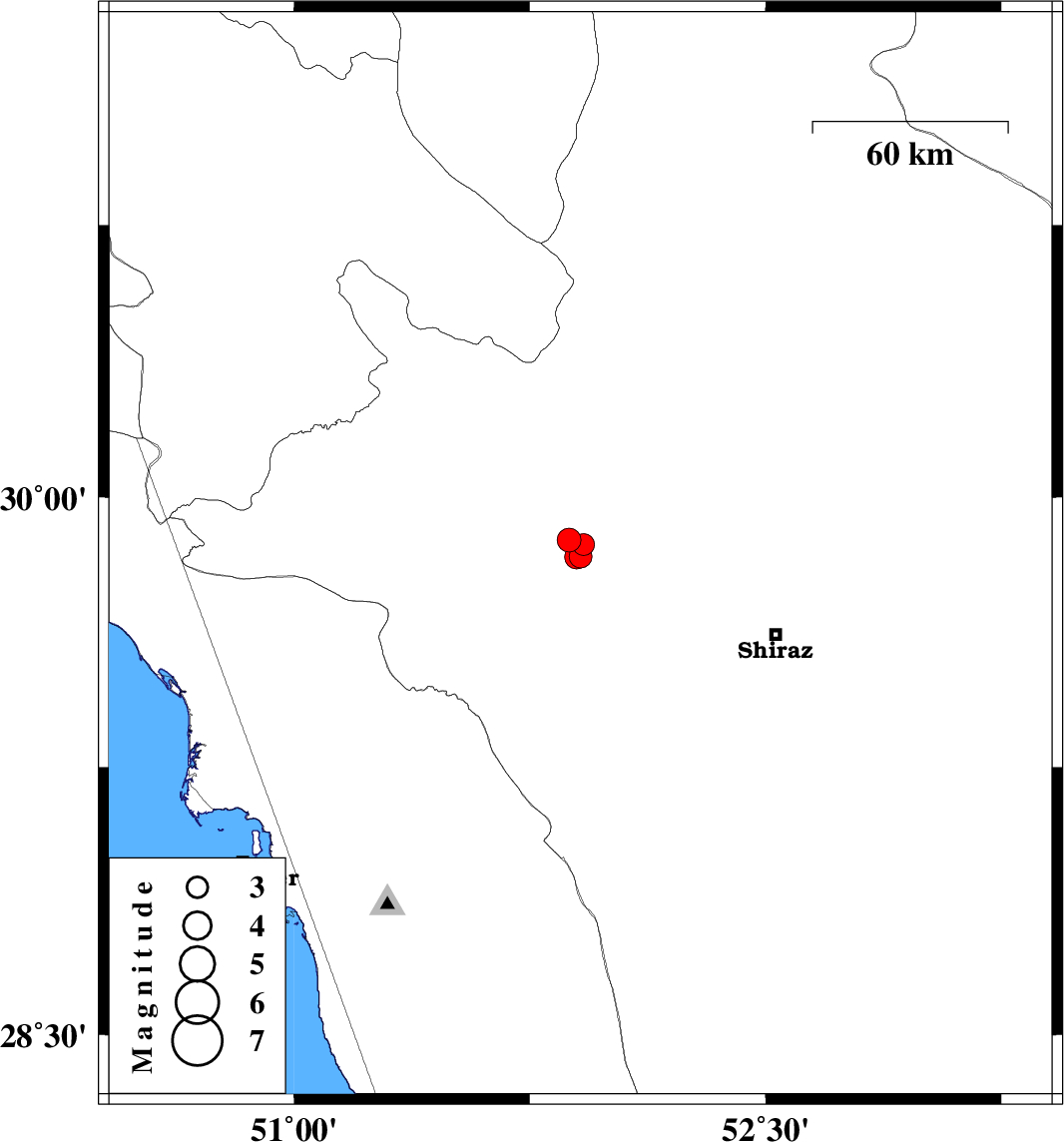 | 2022/11/25 | 05:47:17.4 | 09:17:17.4 | 29.869 | 51.921 | 12 | ML:3.1 | Fars Province, 44 km South of Ardakan | ||