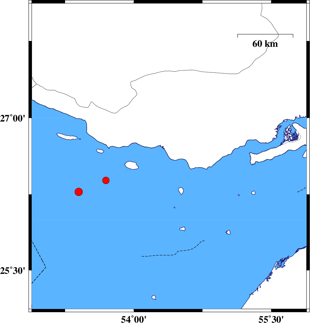 2022/06/16 11:18:16.2 15:48:16.2 26.65354.27912 ML:3.5 Persian Gulf, 61 km South of Bastak