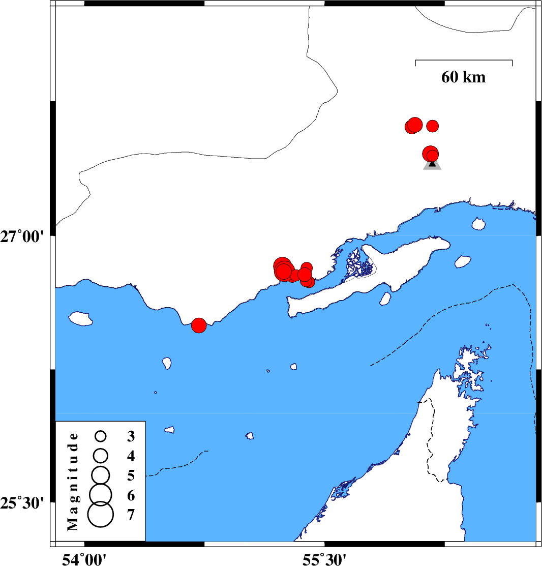 2022/11/30 19:51:26.1 23:21:26.1 26.74755.38516 ML:3.3 Persian Gulf, 59 km North-East of Bandar-e lengeh