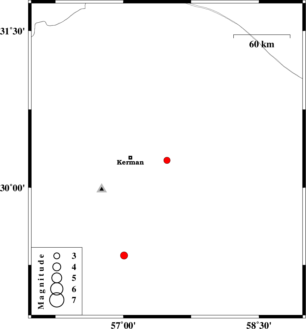 | 2022/12/11 | 00:54:16.6 | 04:24:16.6 | 30.262 | 57.483 | 12 | ML:3.2 | Kerman Province, 39 km -East of Kerman | ||