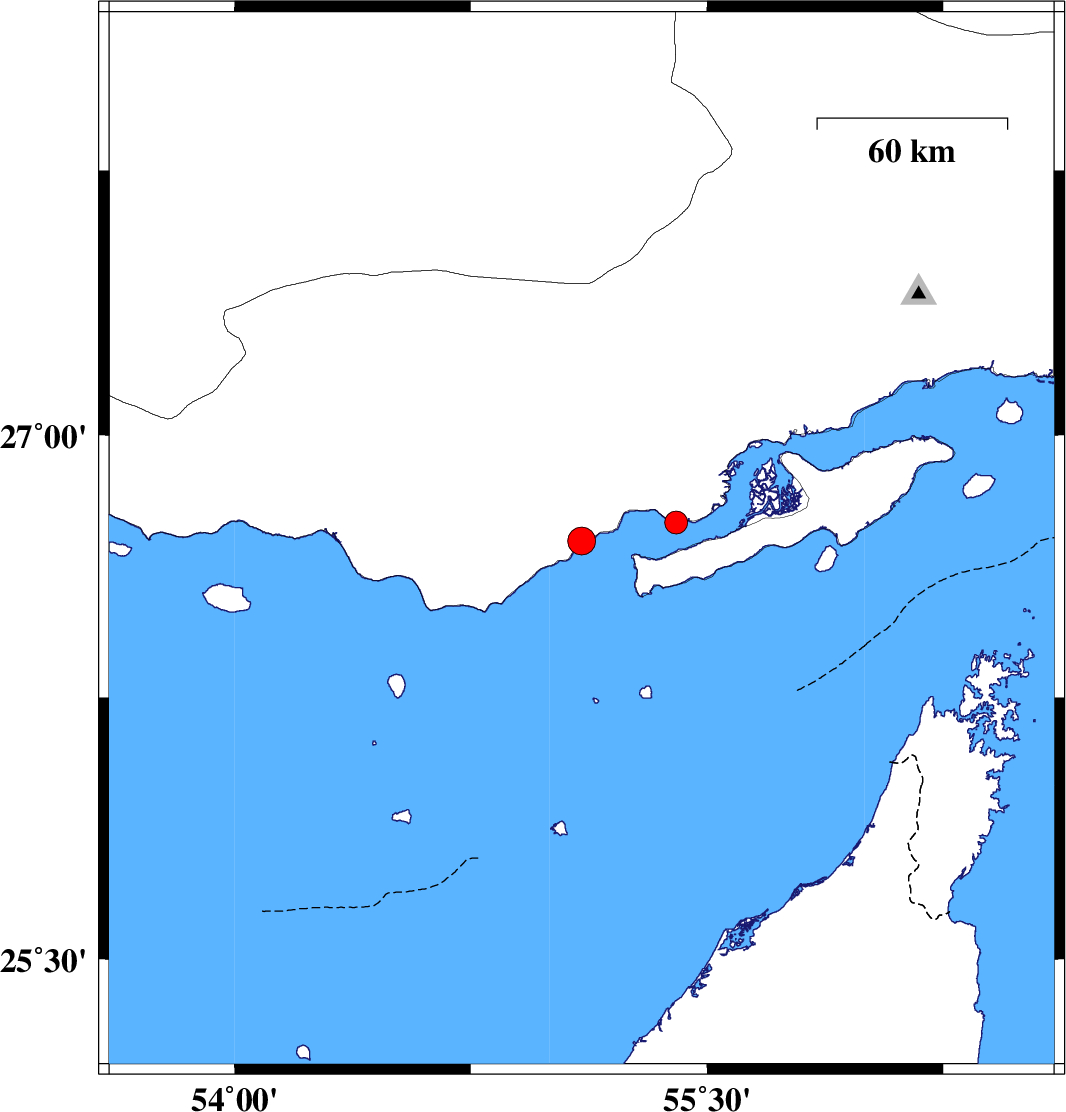 | 2022/12/09 | 19:18:37.0 | 22:48:37.0 | 26.75 | 55.403 | 12 | ML:3.2 | Persian Gulf, 60 km North-East of Bandar-e lengeh |