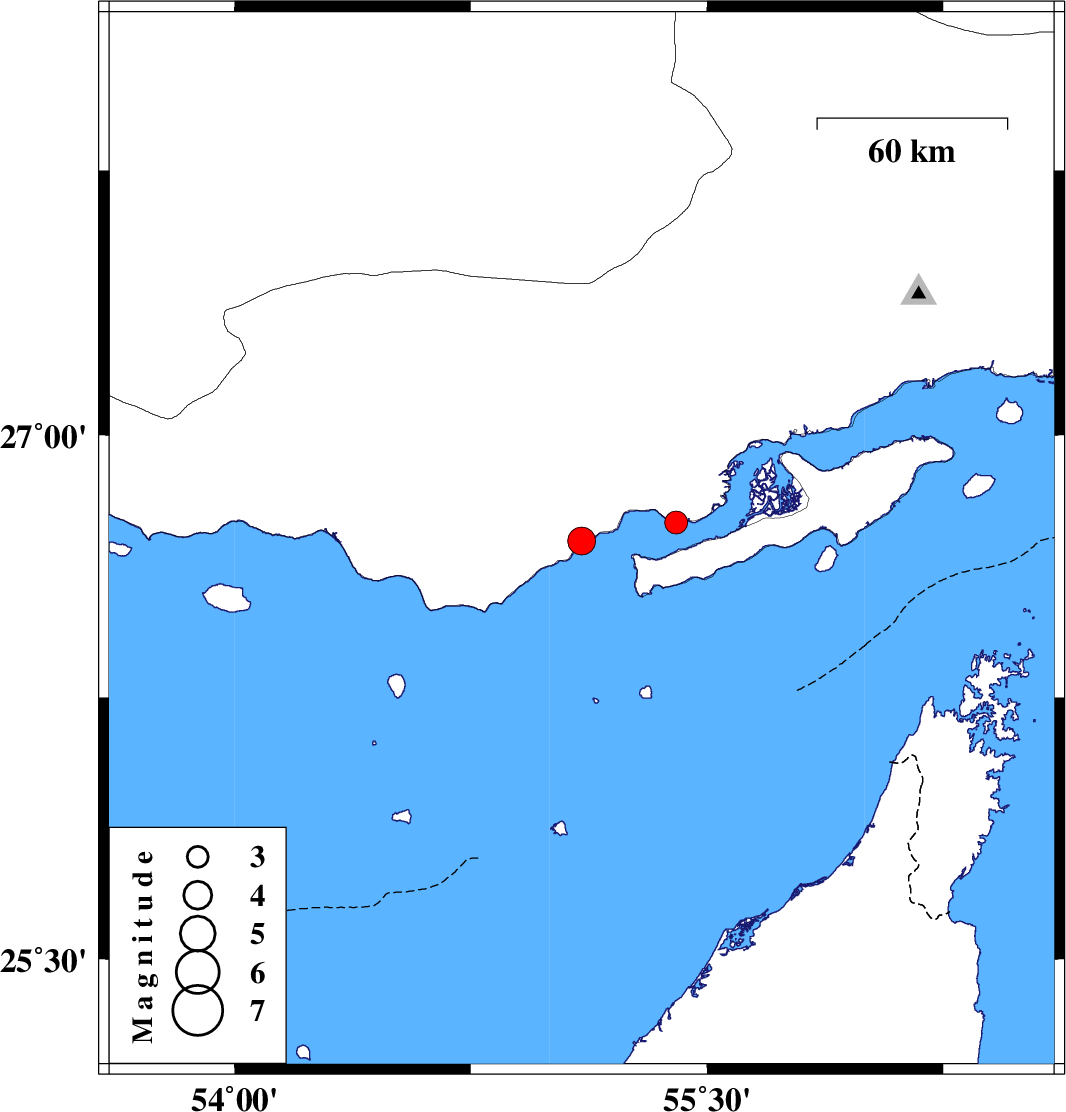 | 2022/12/12 | 03:57:59.5 | 07:27:59.5 | 26.698 | 55.102 | 16 | ML:3.9 | , 32 km North-East of Bandar-e lengeh | ||