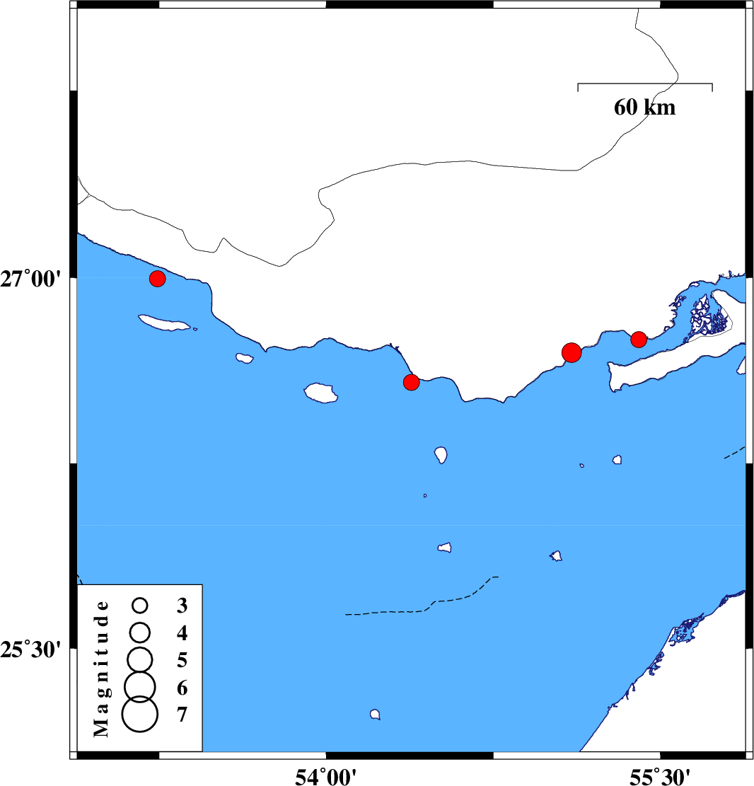 | 2022/12/15 | 00:43:12.0 | 04:13:12.0 | 26.996 | 53.242 | 7 | ML:3.3 | Persian Gulf, 38 km South of Lamerd | ||